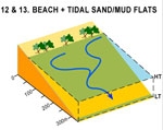 Reflective + tidal sand/mud flats beach