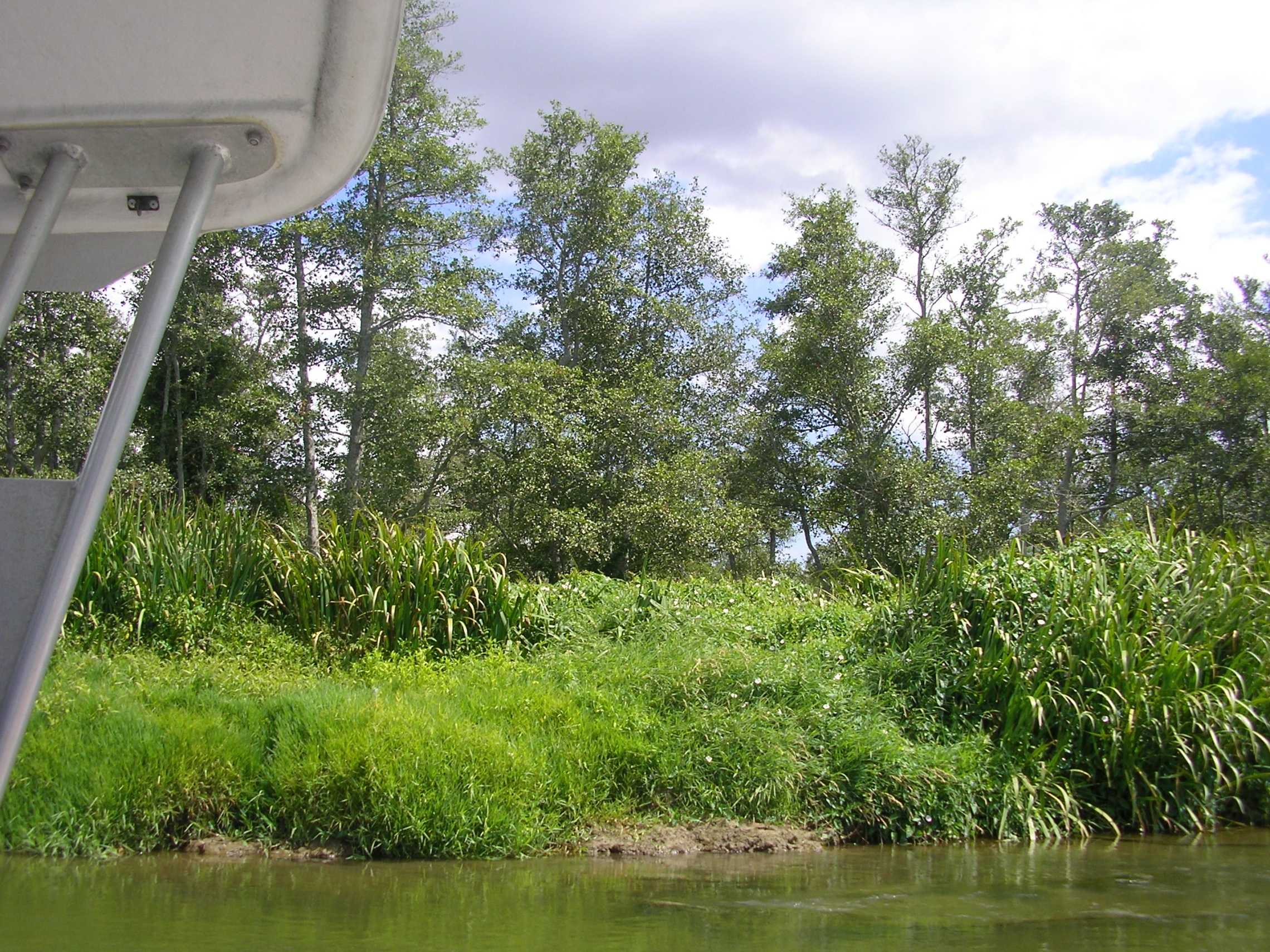 Restoration work on the western Maurea Island in the Waikato River will see two of the main target weed species, the alder trees and yellow flag iris pictured, having to compete with native species.