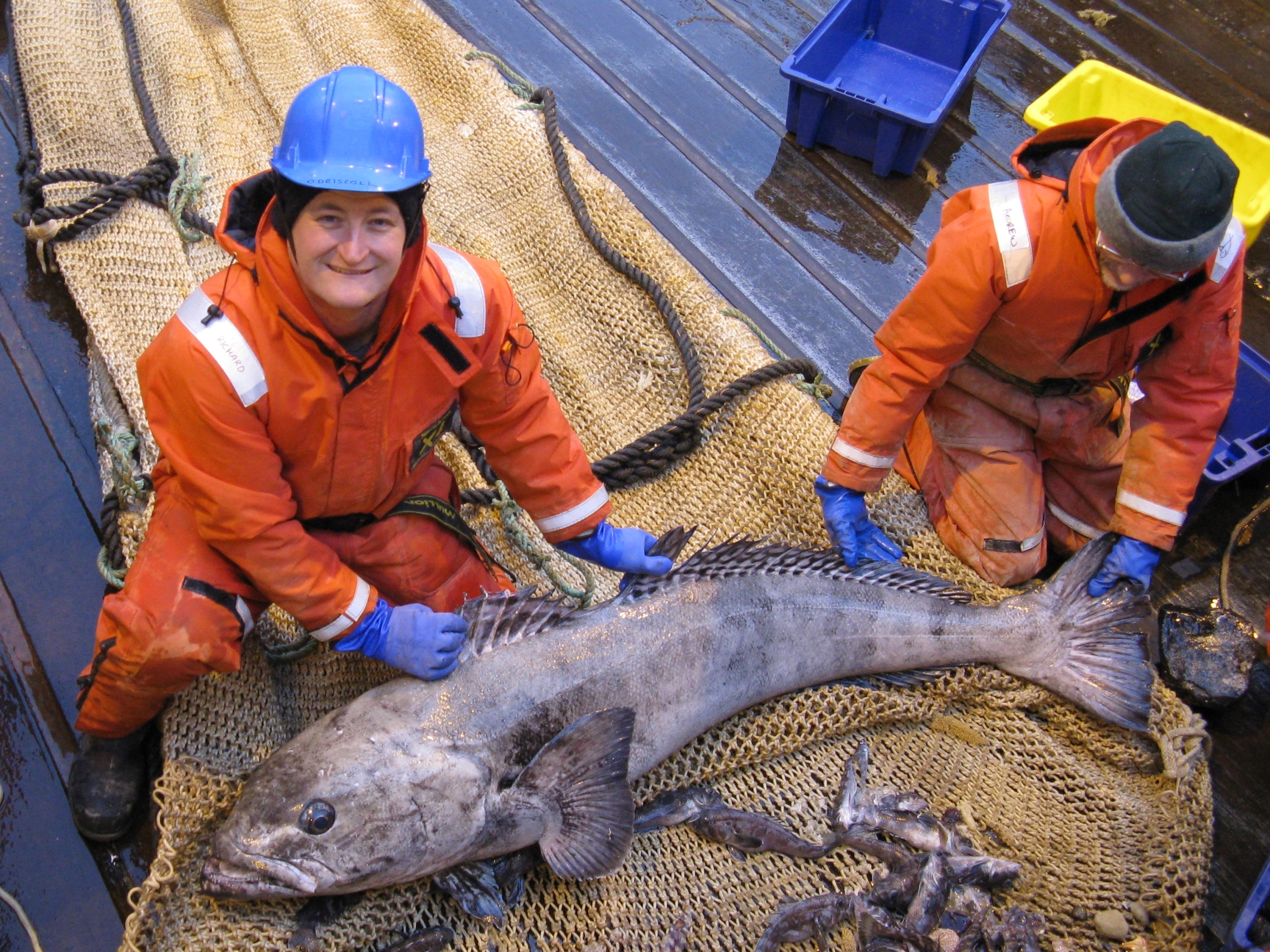 Richard O'Driscoll with a toothfish on board Tangaroa