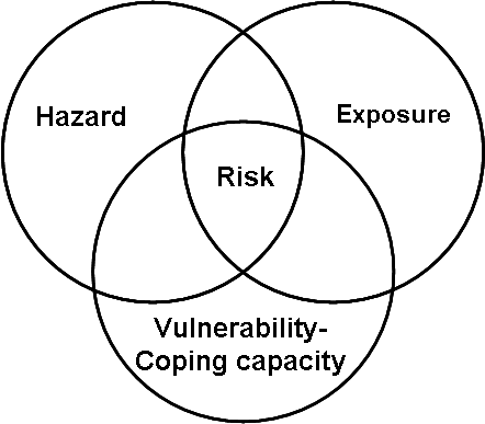 Intersection of hazard, exposure, and vulnerability yields the risk (Reese & Schmidt 2008, p.5)