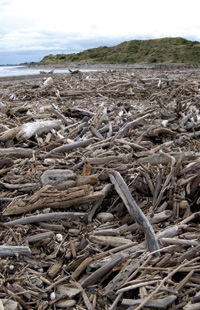 River debris along the beach at Queen Elizabeth II Park on the Kapiti Coast, flushed from southern North Island rivers following the heavy rainfall in early January. (Cover photo: Alan Blacklock)