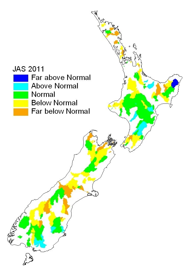 River flows, July to September 2011