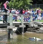 As Rohan Wells maintains communication via the safety tether, a diver searches for aquatic plants along the edge of the river. (Photo: Tracey Edwards)