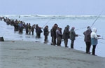 Salmon anglers at the mouth of the Waimakariri River. (Photograph: Nelson Boustead)