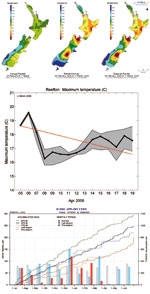 Sample products from ClimateExplorer: climate maps; 15-day forecast for Reefton; plot for the climate station at Appleby.