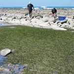 Sampling intertidal seagrass on the rocky reef at Gisborne. (Photo: Jacquie Reed)