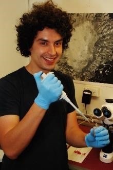 Santiago Herrera taking molecular tissue samples from a deepsea coral associate - the brittle star.