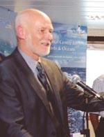Science Minister Pete Hodgson speaking onboard RV Tangaroa at the opening of the new centre. (Photo: A. Blacklock)