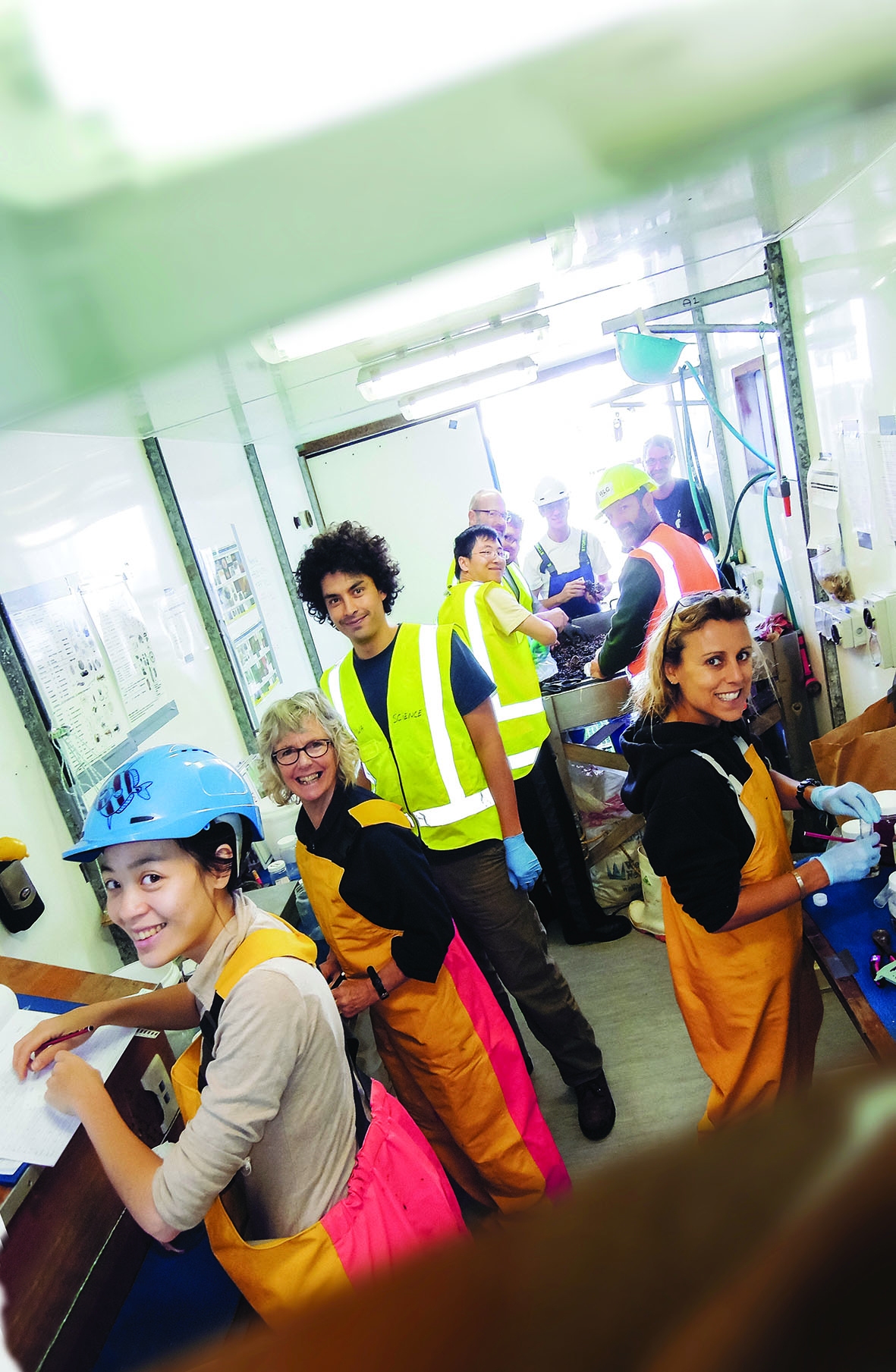 Science staff sorting through specimens from the epibenthic sled. (Deb Osterhage)