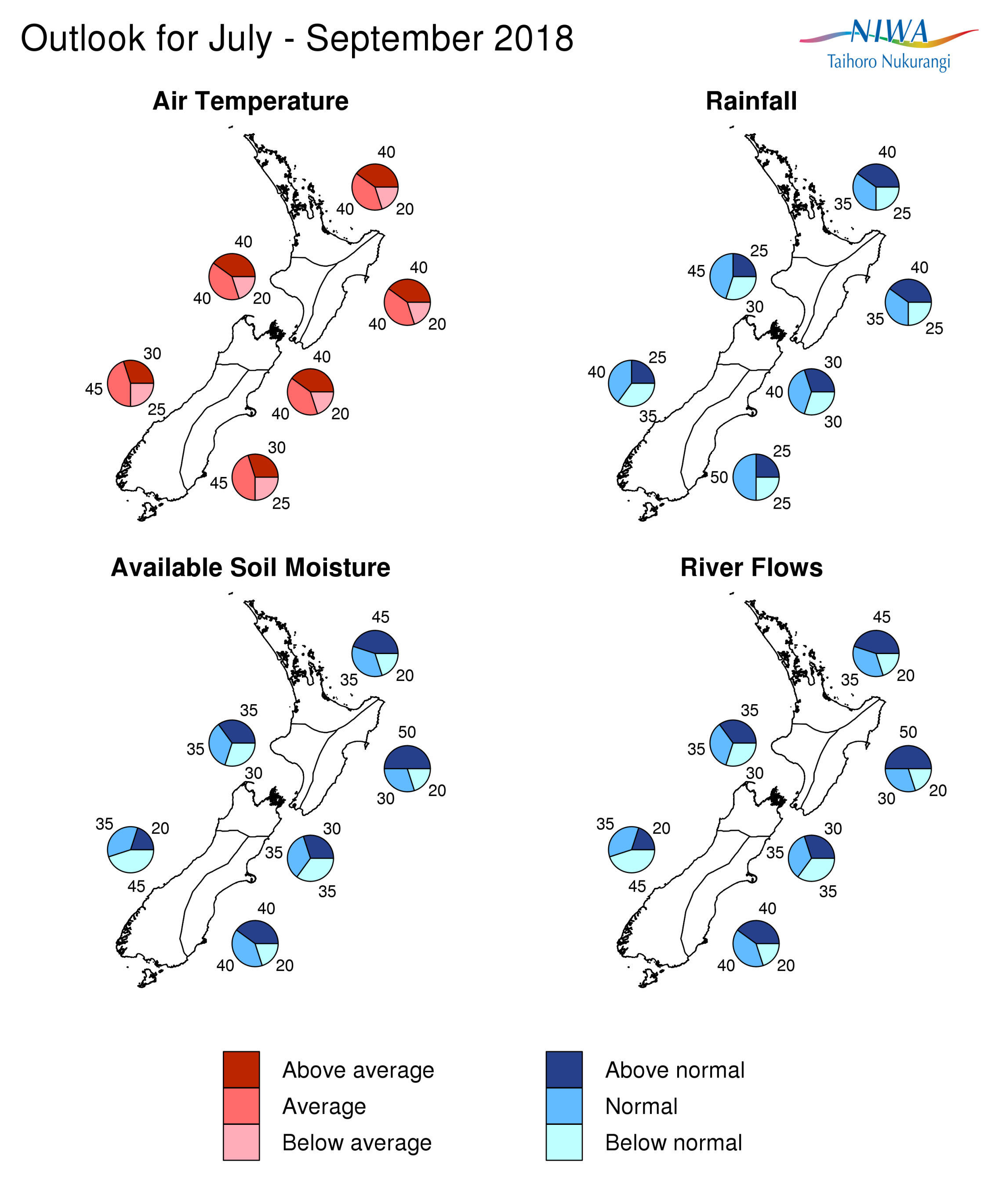 Seasonal probabilities for Temperature, Rainfall, Soil Moisture, River Flows - Seasonal Climate Outlook July - September 2018