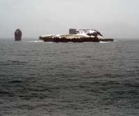 Scott Island and the adjacent 60 m high Haggitts Pillar. (Photo: John Mitchell, NIWA)