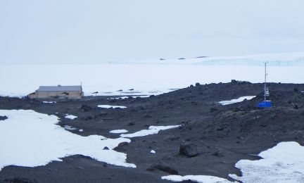 NIWA’s climate station in the right foreground, Scott’s Hut in the background.(Shane Rodwell)