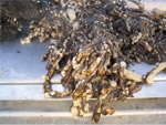 Sea squirts are immobile marine invertebrates. Eudistoma elongatum is a colonial species made up of hundreds of tiny individuals in bag-like bodies attached to the underside of oysters and rack-rails. They extract food from water pumped through a branchia