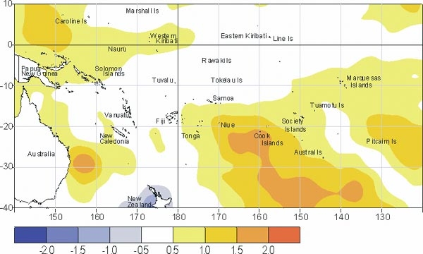 Sea surface temperature anomalies (�C) for April 2004