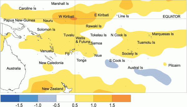 Sea surface temperature anomalies (�C) for March 2005