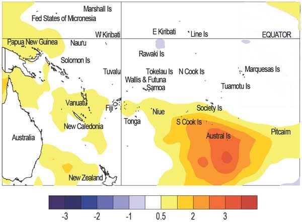 Sea surface temperature anomalies (deg. C) for April 2009.
