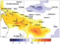 Sea surface temperature anomalies (deg. C) for December 2008.
