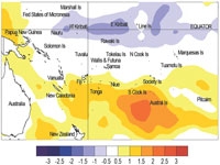 Sea surface temperature anomalies (deg. C) for February 2009.