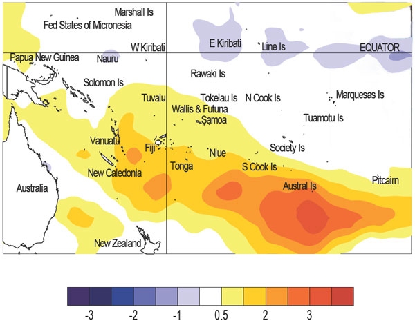 Sea surface temperature anomalies (deg. C) for March 2009.