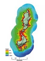 Seafloor image of the bathymetry around the Poor Knights Islands.
