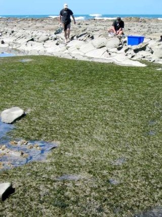 NIWA scientists Mark Morrison and Glen Carbines surveying seagrass meadows near Gisborne, March 2006.
