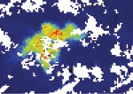A SeaWiFS ocean colour image of the striking 1200 km2 bloom (in green) that resulted from adding iron to a patch of subpolar HNLC Pacific waters west of Canada. The international experiment, led by NIWA scientists, took place in July 2002. (Satellite imag