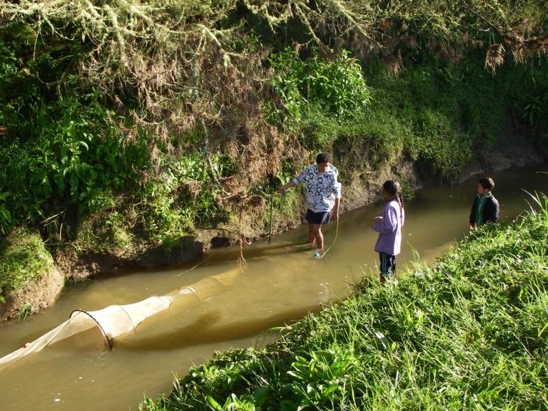 Setting a fyke net overnight in the Punakitere River. Credit: Wakaiti Dalton