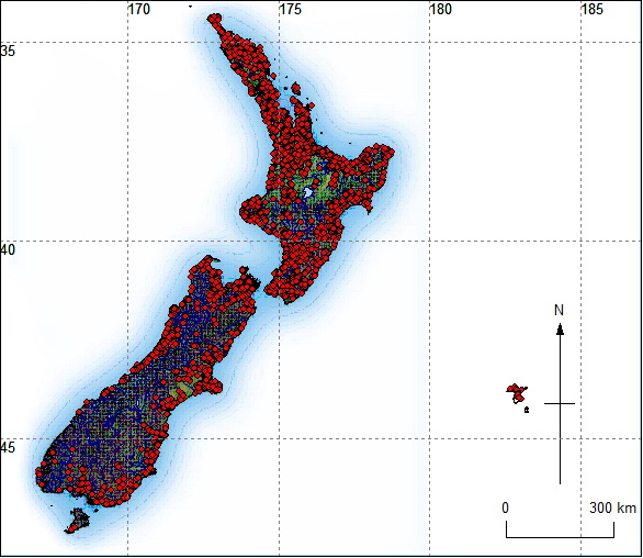 Location of sites where shortfins have been found and recorded in the New Zealand Freshwater Fish Database (NZFFD) (total of 5,814 records out of 31,091 in NZFFD dated between 1925 and 2011). Credit: NIWA