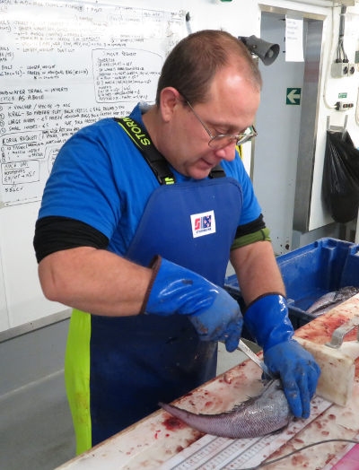 Italian researcher Simonepietro Canese sampling rattails in the Tangaroa wetlab.