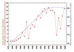 The size of the Antarctic ozone hole in terms of the averaged loss (mass deficit) of ozone (red line), and the corresponding concentrations of ozone-depleting chemicals in the Antarctic atmosphere (blue line).