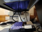 Skin cells combined with fish waste are irradiated with UV light. (Photo: Alan Blacklock)