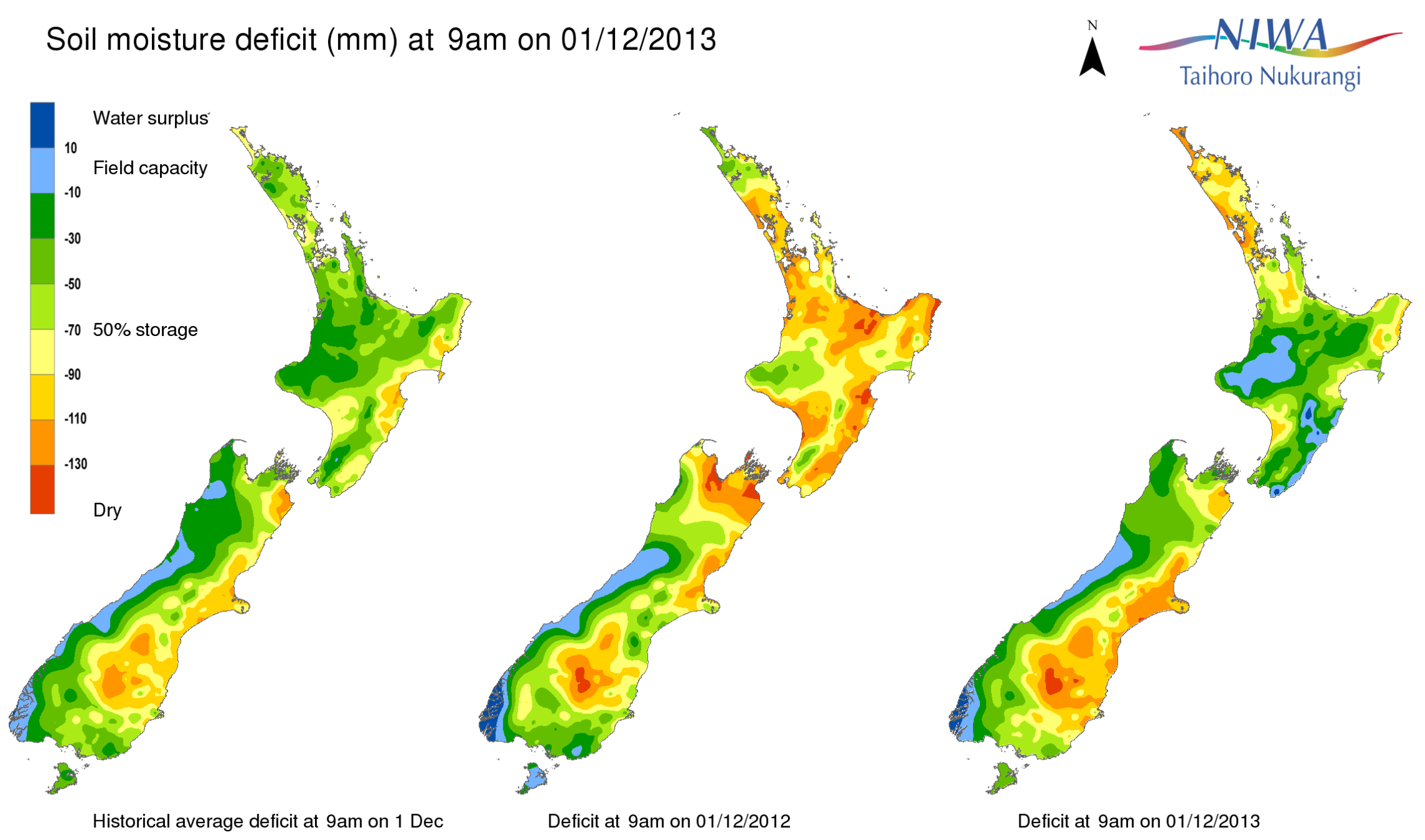 End of month water balance in the pasture root zone for an average soil type where the available water capacity is taken to be 150 mm.