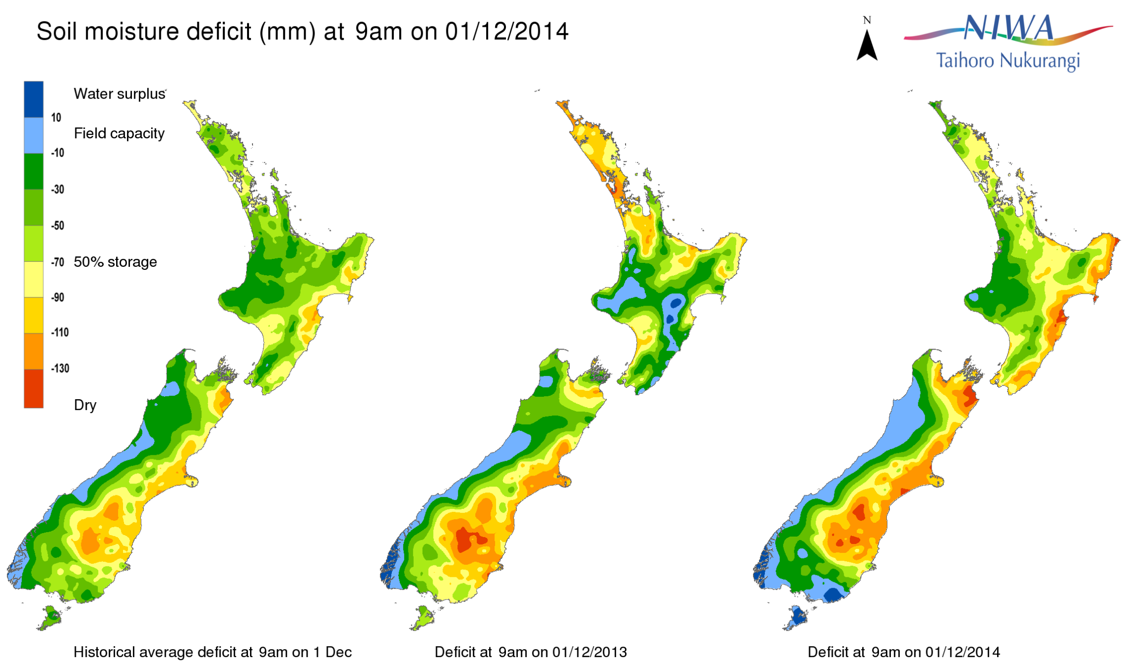 End of month water balance in the pasture root zone for an average soil type where the available water capacity is taken to be 150 mm.
