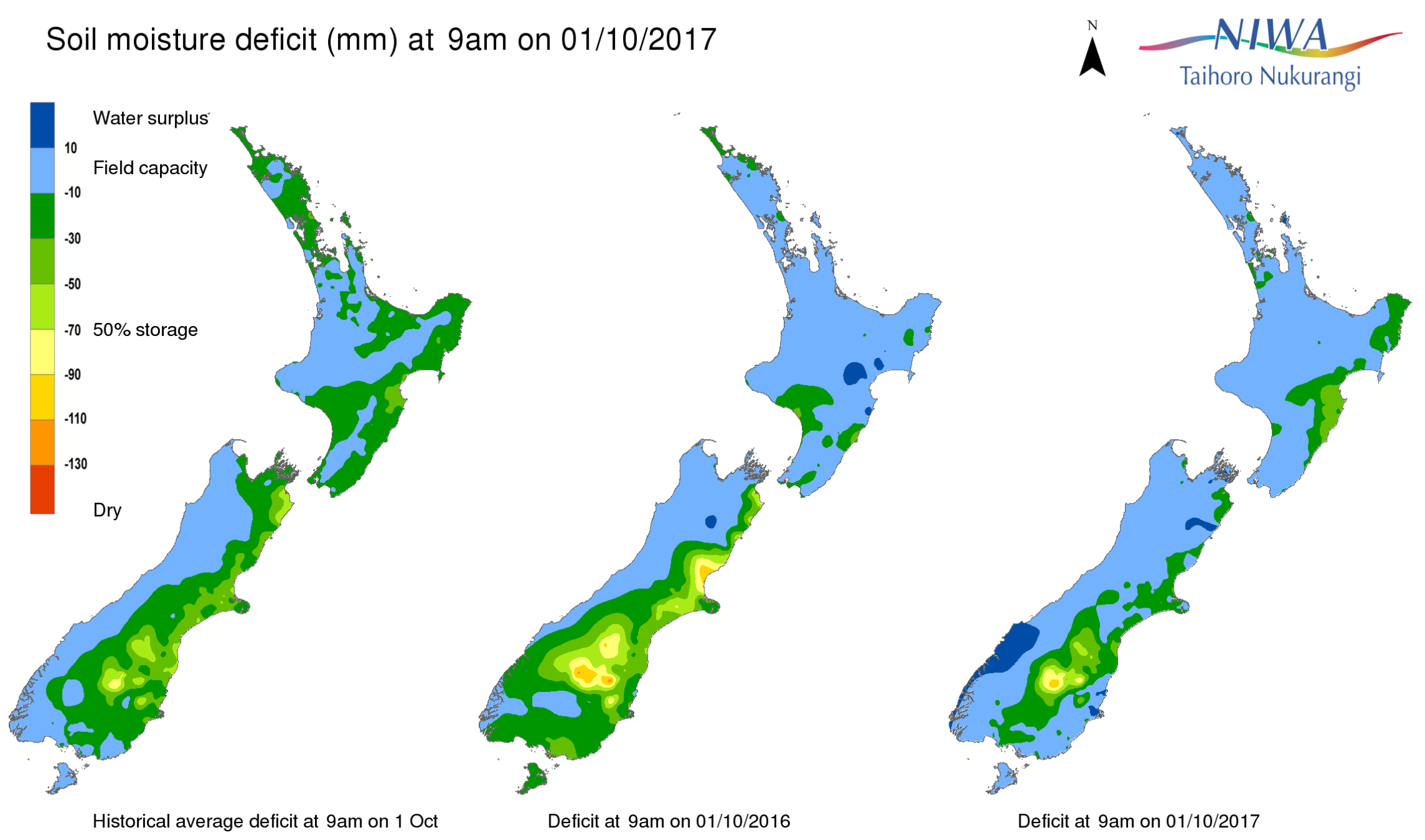 End of month water balance in the pasture root zone for an average soil type where the available water capacity is taken to be 150 mm.
