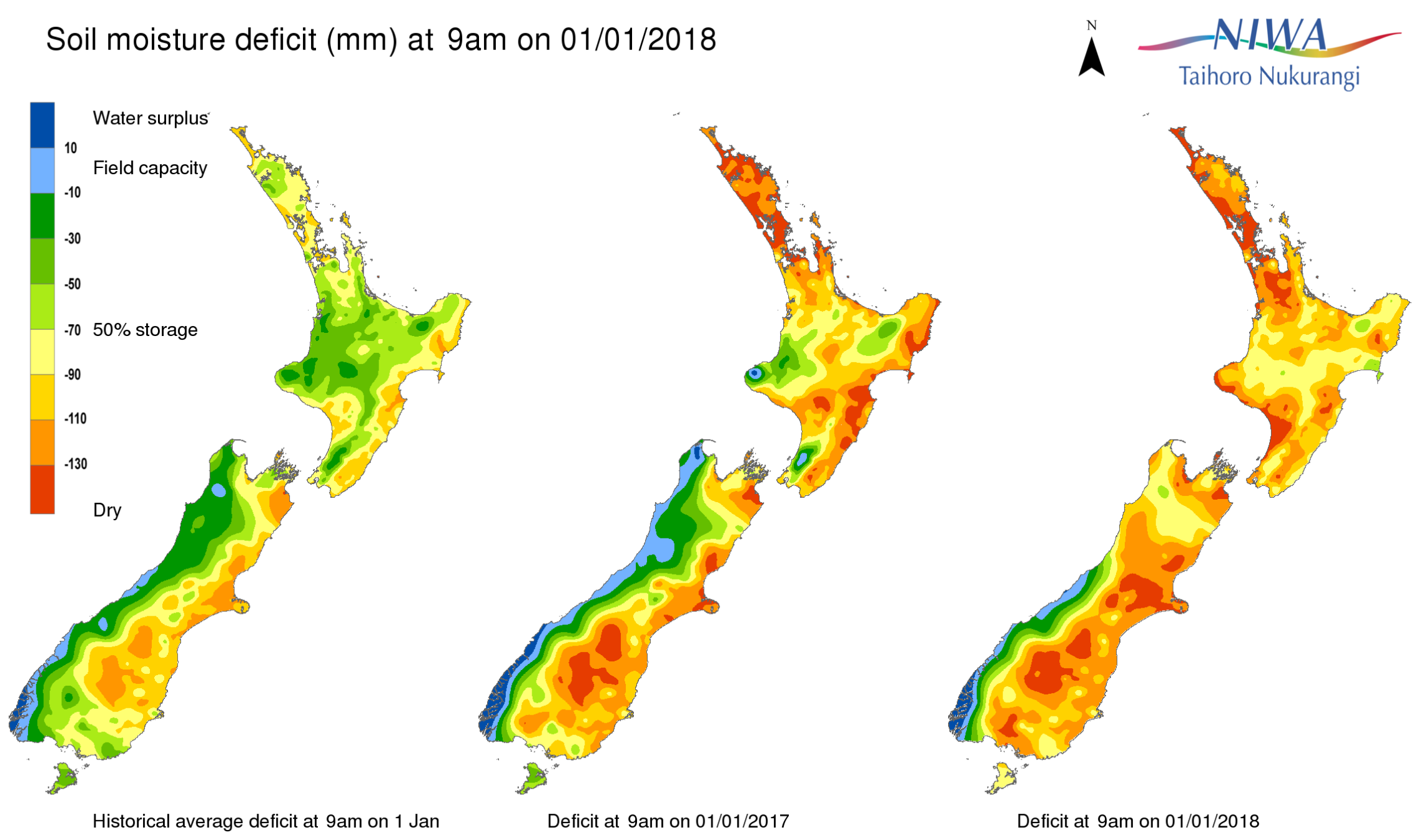 End of month water balance in the pasture root zone for an average soil type where the available water capacity is taken to be 150 mm.