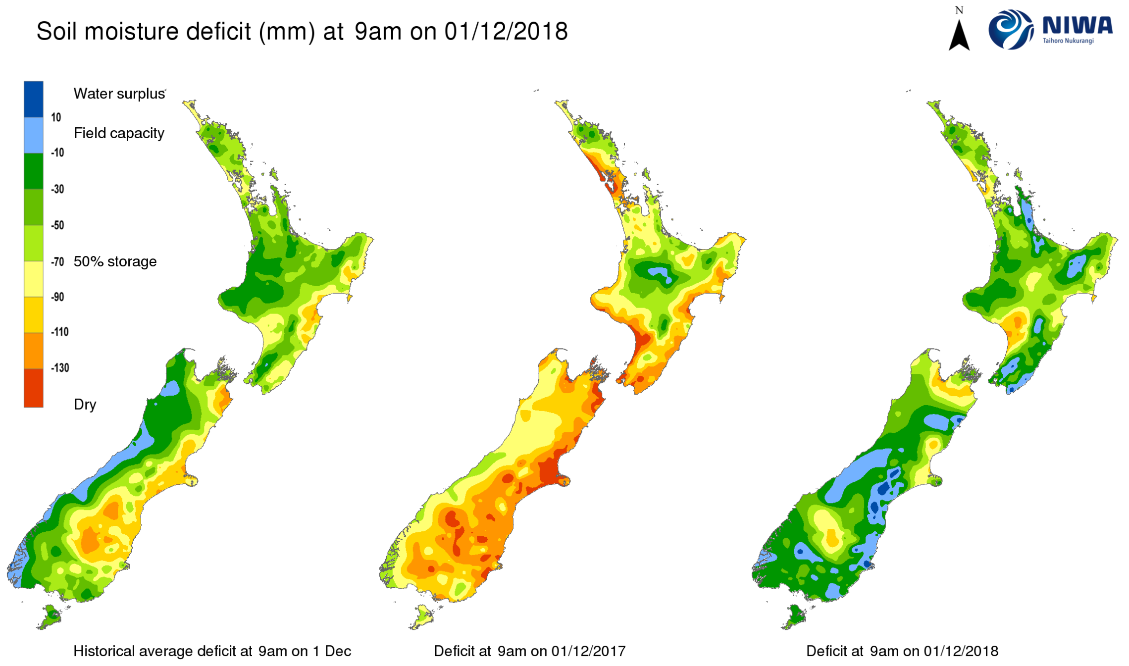 End of month water balance in the pasture root zone for an average soil type where the available water capacity is taken to be 150 mm.