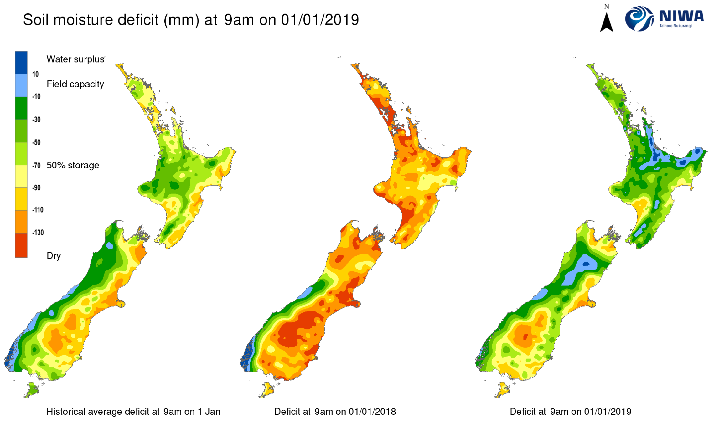 End of month water balance in the pasture root zone for an average soil type where the available water capacity is taken to be 150 mm.