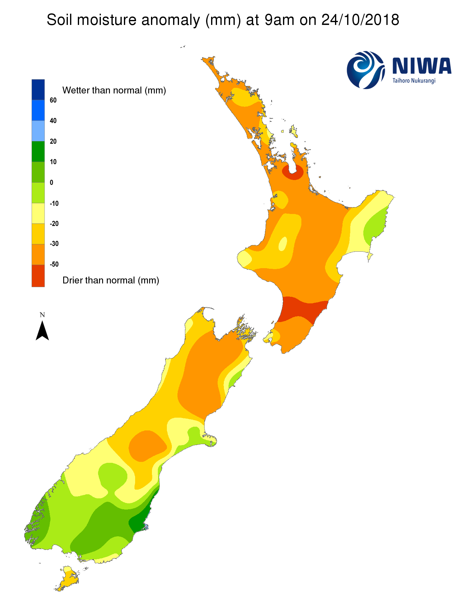 Soil moisture anomaly (mm) at 9am on 24/10/2018.