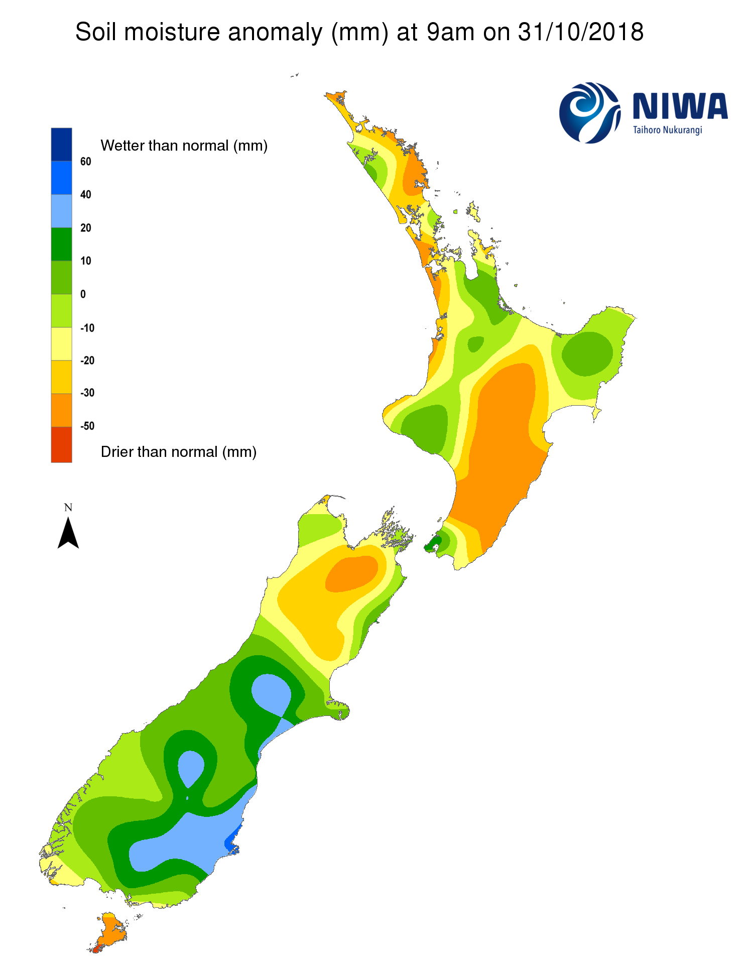 Soil moisture anomaly (mm) at 9am on 31/10/2018