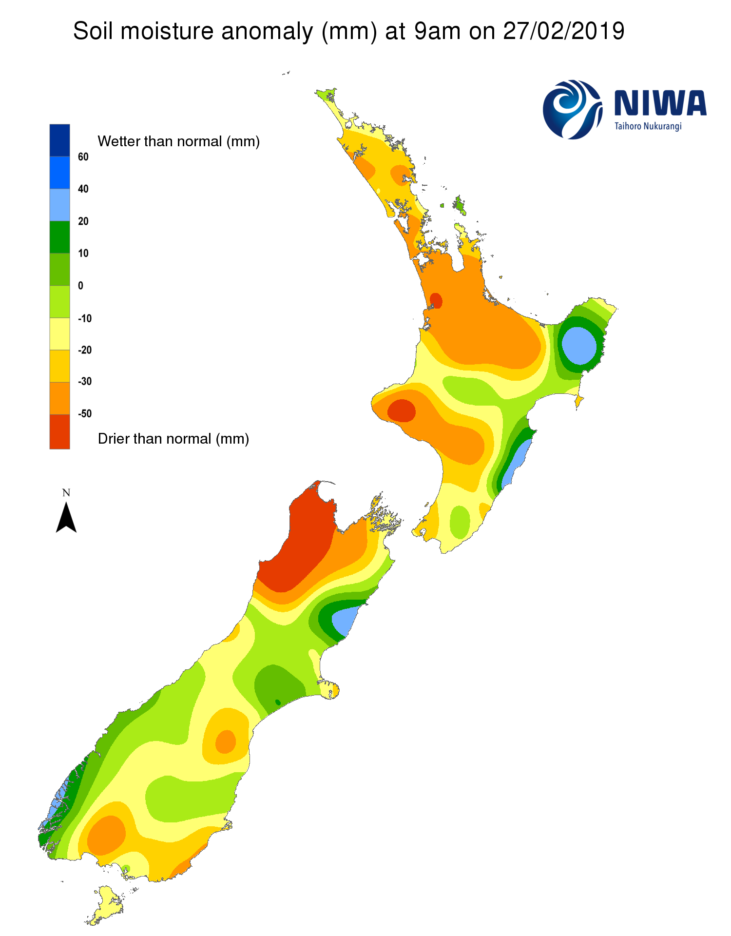 Soil moisture anomaly (mm) at 9am on 27 February 2019