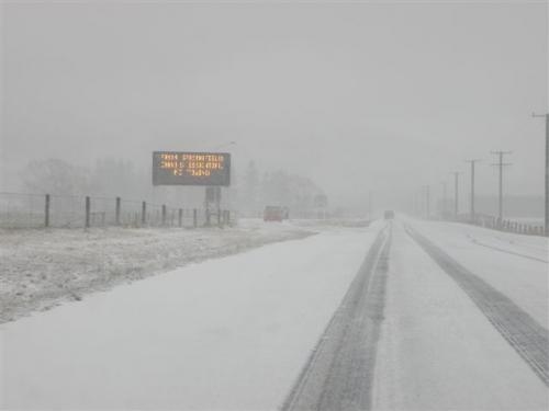 Snowy road just outside Springfield at 10 am on 31st May (courtesy of Margaret Woulfe, NIWA)