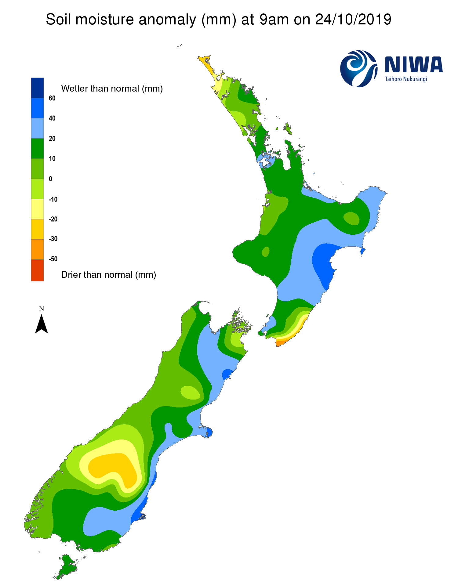 Soil moisture anomaly (mm) map 24 Oct 2019