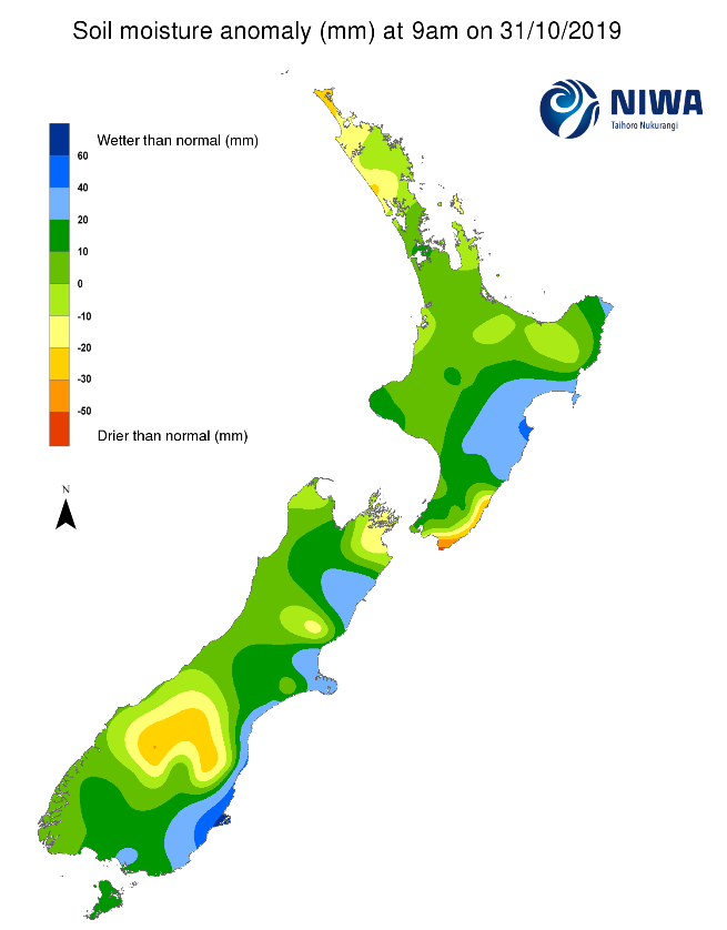 Soil moisture anomaly (mm) map 31 Oct 2019.