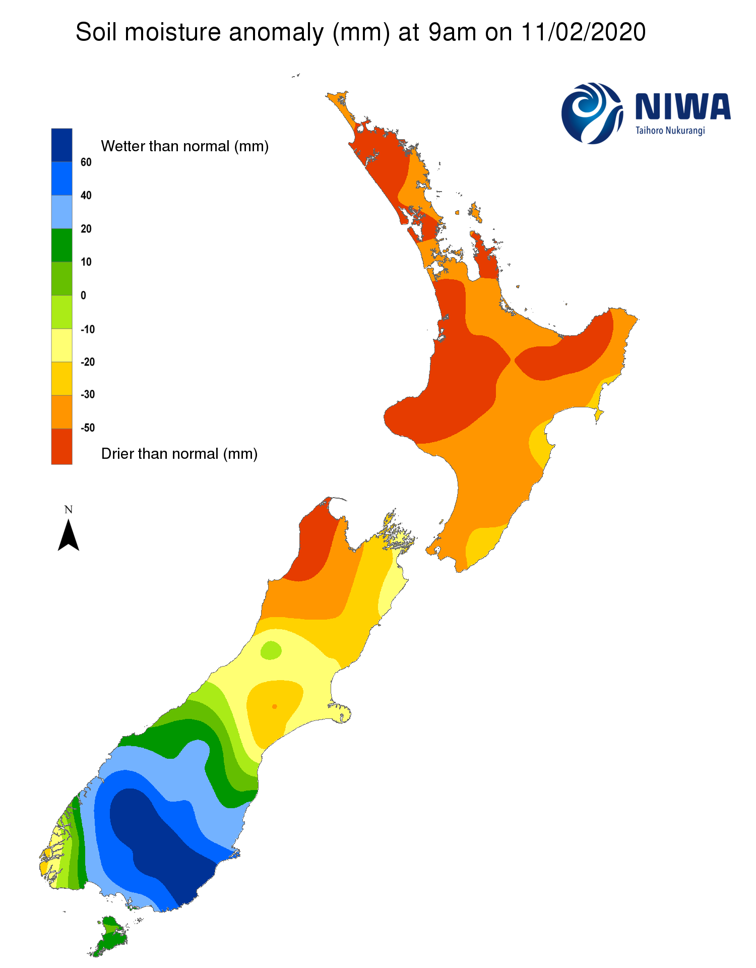 Soil moisture anomaly map 11 February 2020