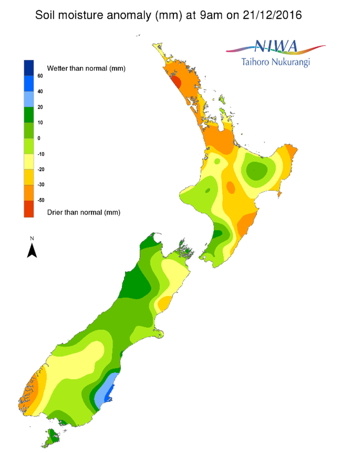 Soil moisture anomaly map for 9am 21 December 2016, relative to this time of the year.