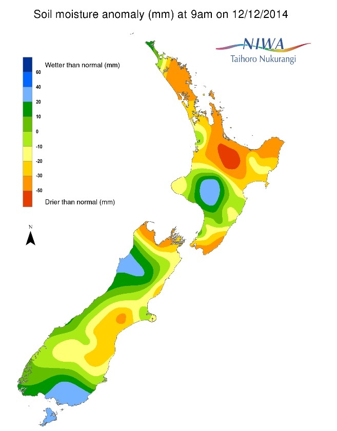 Soil moisture anomaly (mm) at 9am on 12/12/14