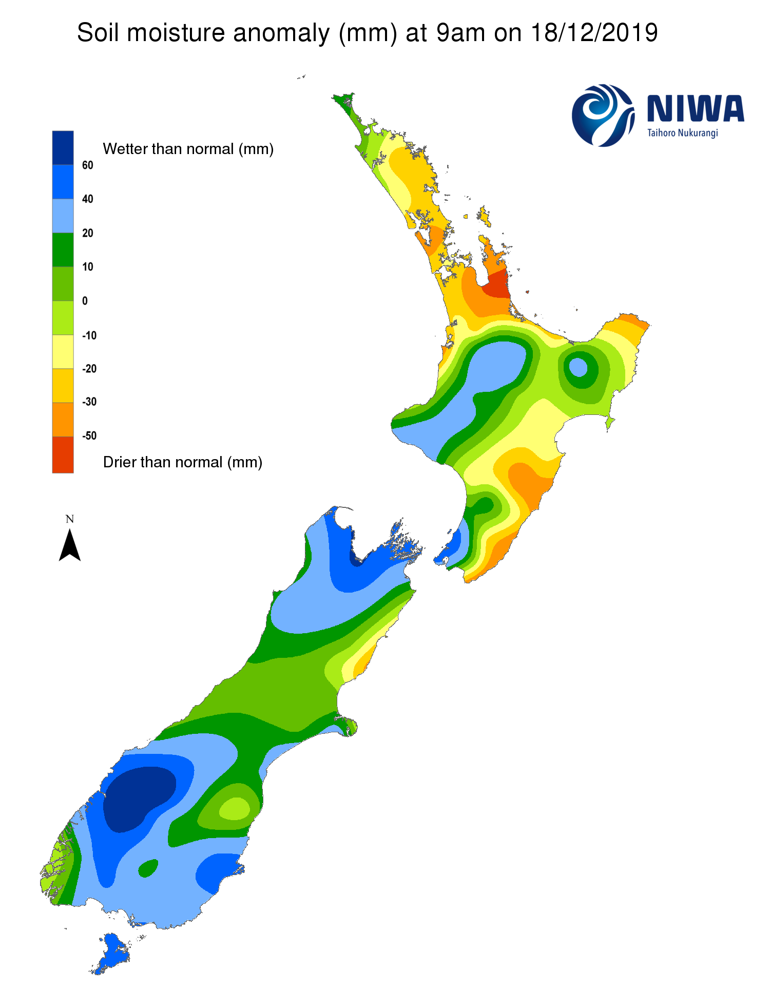 Soil moisture anomaly (mm) at 9am 18/12/2019.