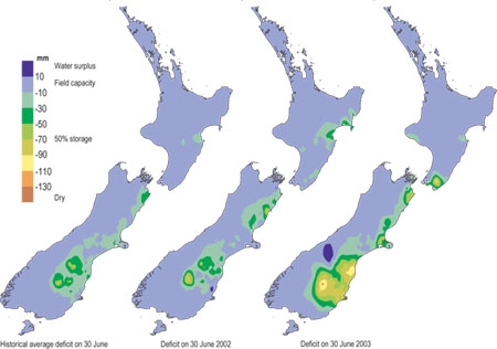 Soil moisture deficit in the pasture root zone at the end of June.