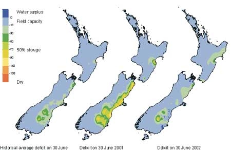 Soil moisture deficit in the pasture root zone at the end of June