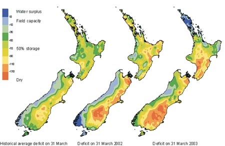 Soil moisture deficit in the pasture root zone at the end of March.